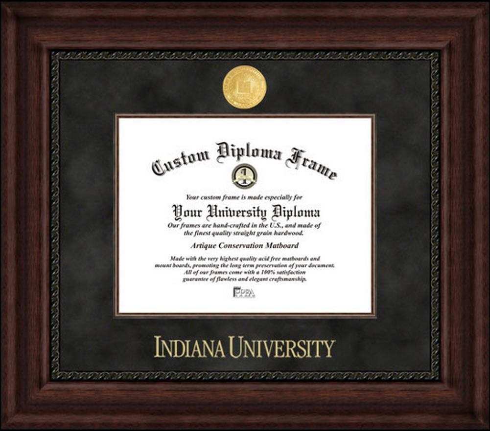 Classic satin mahogany diploma frame, Gold embossed with Campus Images lithograph. Medallion or foil seal with the official University marks and imprinted with University name. Custom made to fit any diploma size.