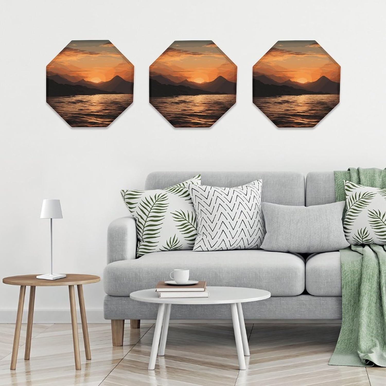 This modern abstract wall decoration brings a luxurious feel to your walls, creating a stylish home décor. It can be easily installed on any blank wall, adding texture and depth to your home.Personalized signs are perfect for kitchens, bathrooms, doors, garages, TV walls, living rooms, and other spaces. They can be hung in living rooms, bedrooms, hallways, offices, meeting rooms, and waiting areas. Use them on manhole covers, partition walls, or any other small, unique sign you desire.Our octagonal iron plate is the perfect gift because each of our octagonal iron Mountain And Water at Sunset plates features a unique pattern, suitable for any occasion. The unique pattern adds a distinctive touch.Come and choose the decorative mural that suits you best!
