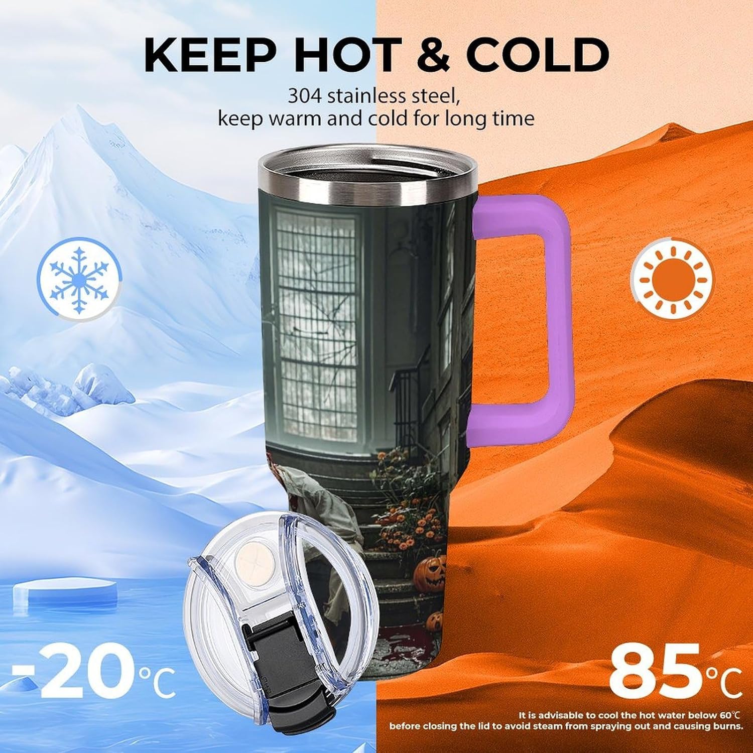 The simple tumbler is double walled and vacuum insulated to keep your drink hot or cold for hours.The cup is outfitted with an ergonomic handle, that is aesthetically designed for comfort. It comes with a straw lid and a straw so you can enjoy your favorite beverage on the go.The bottom of the cup is conveniently sized to fit car cup holders for easy portability. Fill your insulated tumbler with coffee, sweet tea, ice water, milkshakes, juice, cocktail, lemonade and more!If you are looking for the perfect birthday or holiday gift, don't miss this one. It can be a surprise gift for women, friends, family, couples.If you have any questions during your purchase or gifting process, please reach out to us—we're happy to help!
