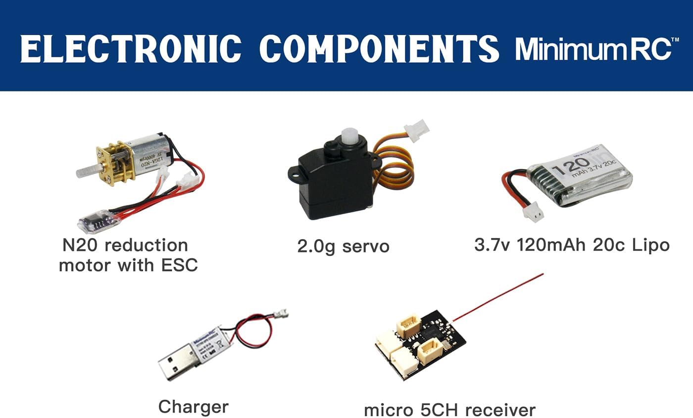 Specifications:.Material: ABS.Wheelbase: 80mm.Motor: N20 geared motor 4000rpm.ESC: 3A bidirectional 1.0JST plug ESC.Battery: 3.7V 120mAh 20C battery.Charger: Lithium battery charger.Remote controller: 2.4GHz.Flap: No.Experience level: Beginner/Professional.Use location: Outdoor/Indoor.Driving time: 10-15 minutes.Assembly time: Approximately 30 minutes.Product Weight: 0.39lb.Product Dimensions: 4.33×3.15×1.18in.Ages: 16+ Package Including.Kart Assembly parts set *1 .Remote controller *1 .Battery *2.Charger *1 .Electronic receiver *1 .Servo *1