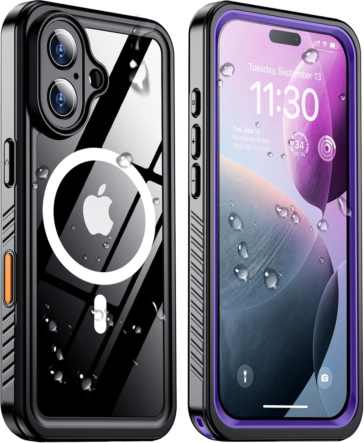 Temdan Magnetic for iPhone 16 Pro Max Case Waterproof,Built-in Screen Protector[IP68 Underwater][Upgrade Military Dropproof][Compatible with MagSafe] Full Body Shockproof Translucent Case 6.9''-Blue