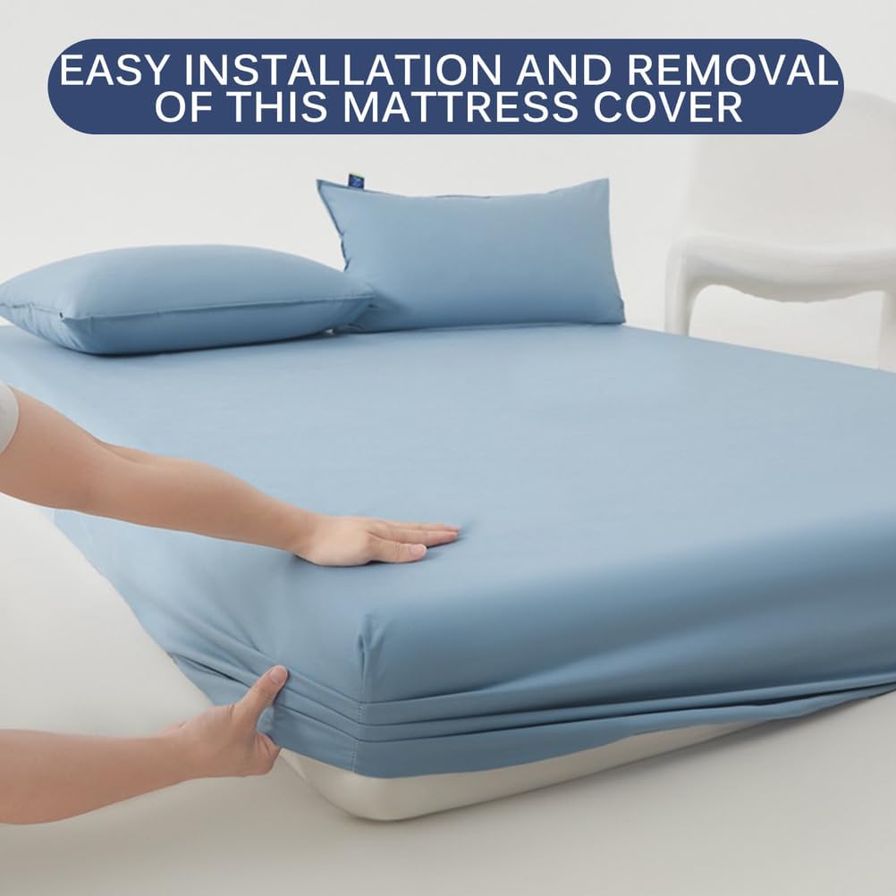Is it a common habit for you to eat or drink while lying in bed?Does your child frequently wet the bed at night?Do you often allow your pet to sleep in your bed with you?If that's the case, our queen size waterproof mattress protector is a great addition to ensure a comfortable sleep experience.Let your sleep be no longer at stakeFabric:Surface polyester fabricBack TPU waterproof filmPrinting And Dyeing Process: Reactive Printing And DyeingFeatures: Waterproof, Breathable, DustproofColor:blue,grey,white,purple,green,pinkSize:90*200cm(35*79in)120*200cm(47*79in)150*200cm(59*79in)180*200cm(71*79in)200*220cm(79*87in)notes:1. Please allow 1-3cm error due to manual measurement.2. Due to different monitors, there may be slight color differences. We hope you can understand.Package Includes:1 x Mattress Protector (pillowcase not included)